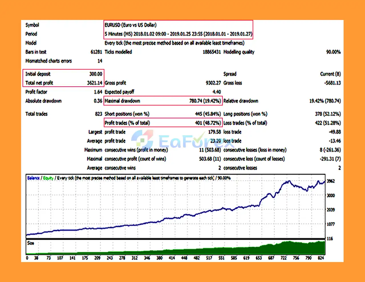 GBPUSD – 13 months: $3,621.14 net profit, 48.72% win rate, 19.42% max drawdown
