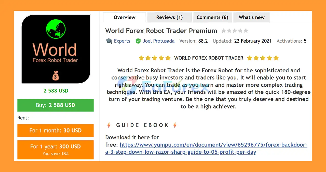 2. Who developed World Forex Robot Trader Premium EA MT4?