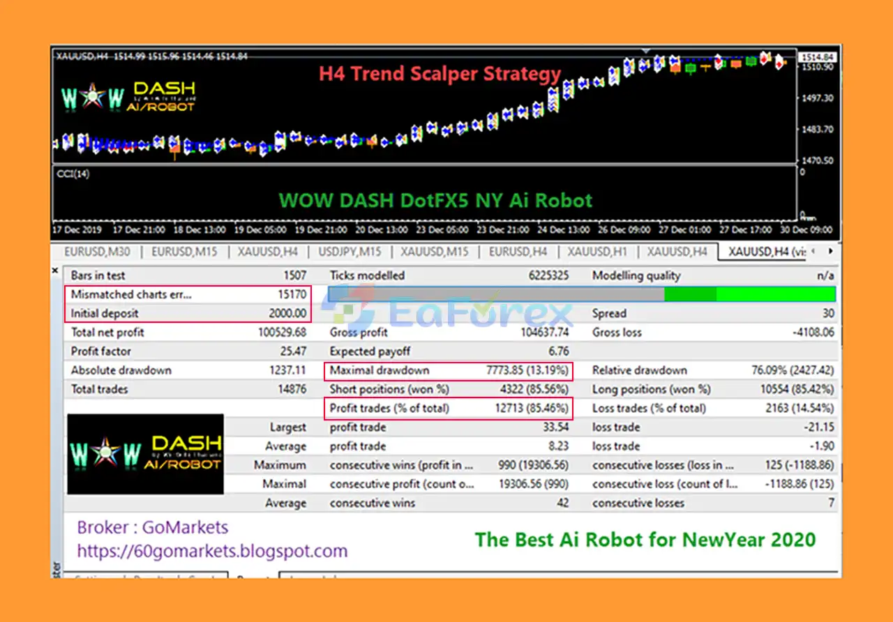 WOW Dash DotFX5 NY Ai Robot EA MT4 Backtest Results
