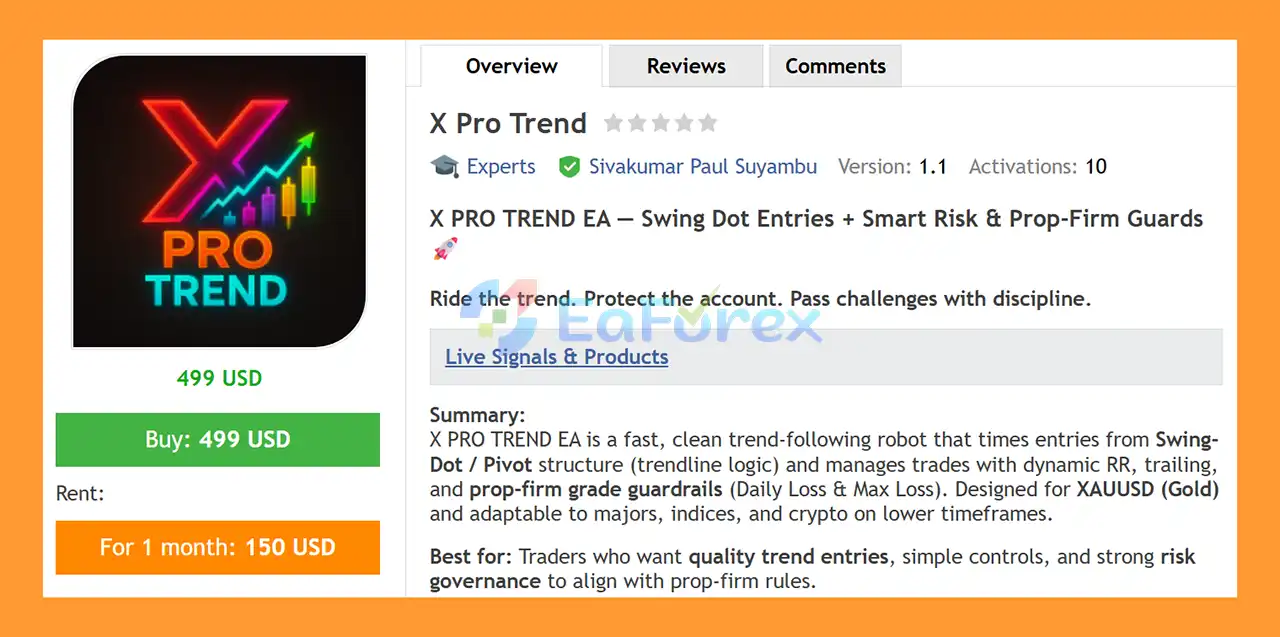 • Flagship Product: X Pro Trend EA MT5 is rated as the best performing product of the year.