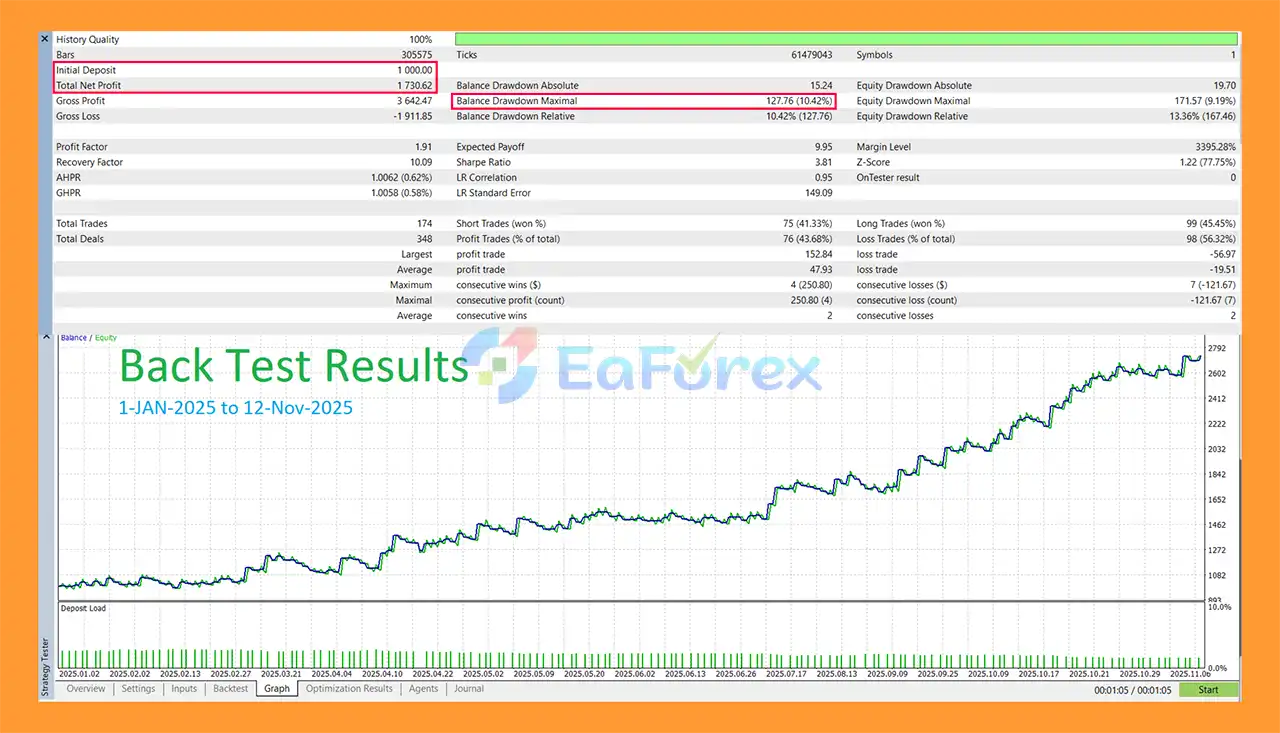 X Pro Trend EA MT5 Backtest Results