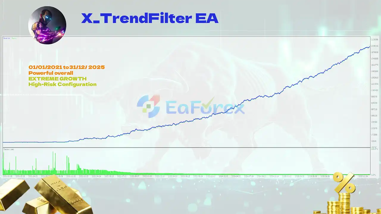 X TrendFilter EA MT5 is a professional automated trading system designed for long-term capital protection. It trades only when market conditions meet strict quality criteria, prioritizing account safety over frequent trading.