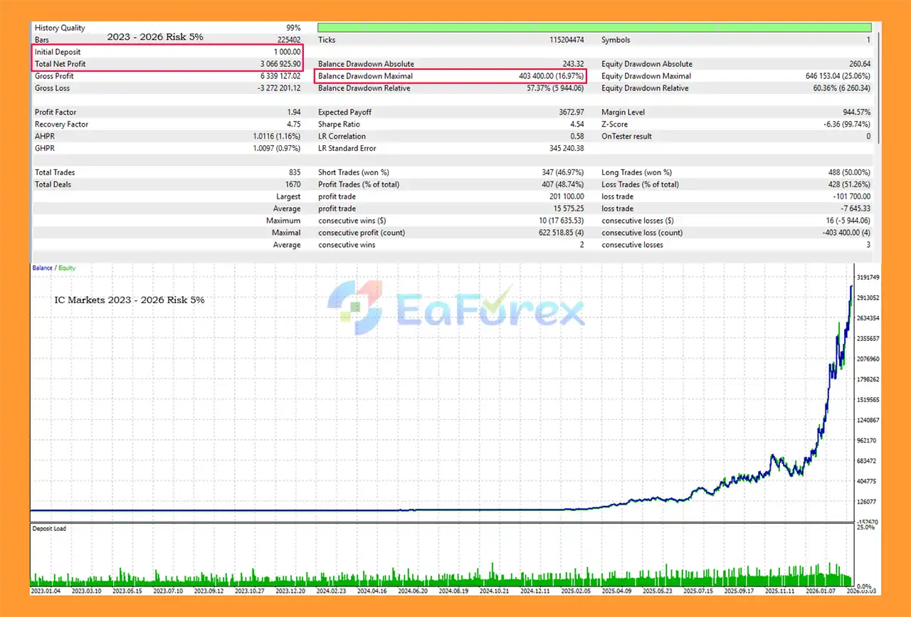 Yes. It is specifically optimized for XAUUSD trading in highly volatile market conditions, such as those expected in 2025–2026, with a focus on capital preservation and consistent growth.