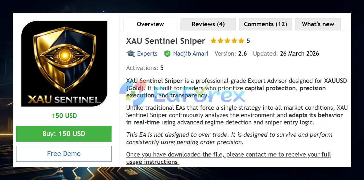 • Notable Products: XAU Sentinel Sniper EA MT5,  XAU Sentinel Sniper MT4, BreakoutMatrix Pro EA MT5and other products.