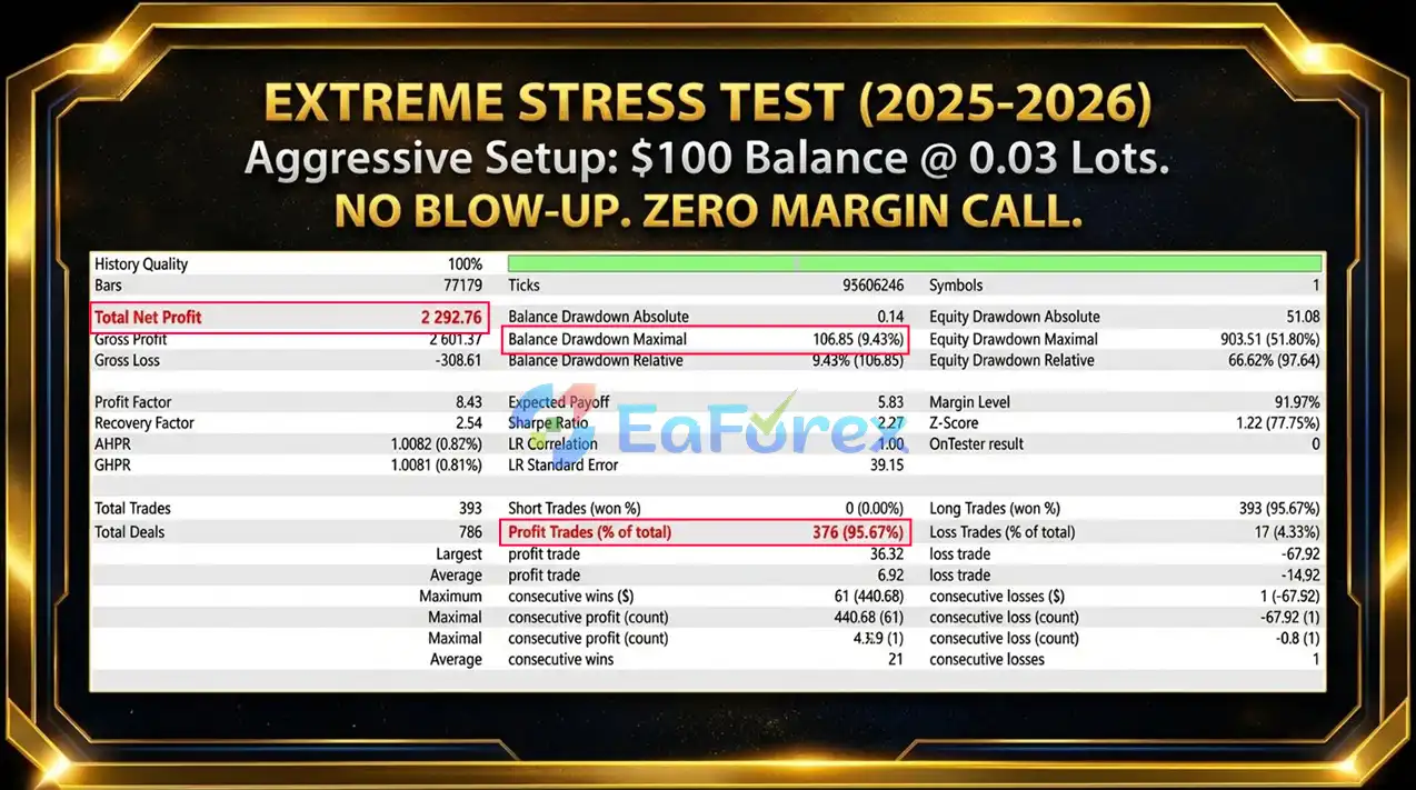 • No Martingale or Grid: Eliminates high-risk strategies commonly used in unstable EAs.