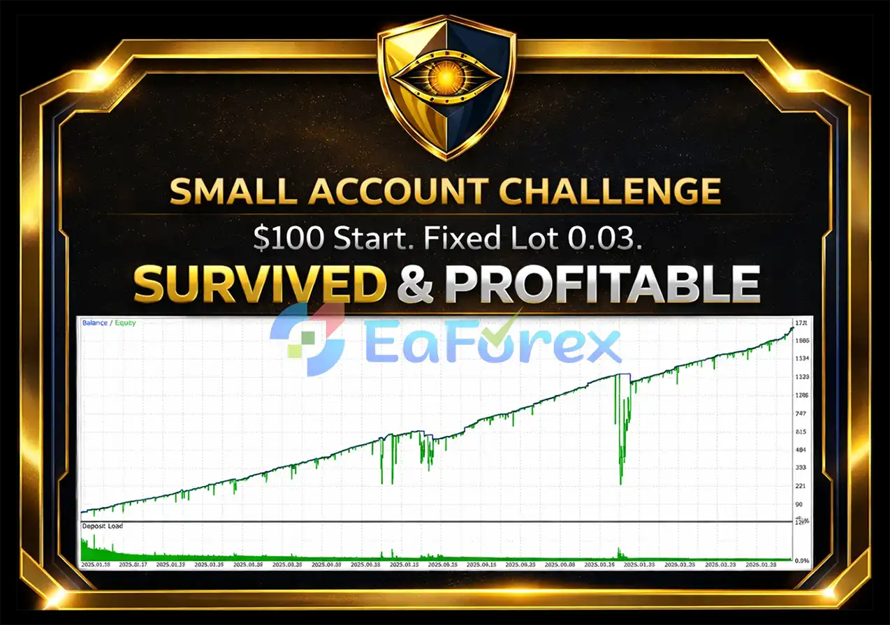 Based on a 1-year backtest, the EA achieved a 95.67% win rate, a total net profit of $2,292.76 from a $100 deposit, and a maximum drawdown of 9.43%, demonstrating strong performance and stability.
