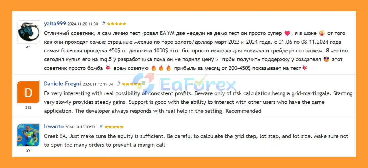 🔺 Yarukami Mnukakashi EA MT4 is highly appreciated by the MQL5 community for bringing stable and reliable profits. Below are 5 star reviews from users: