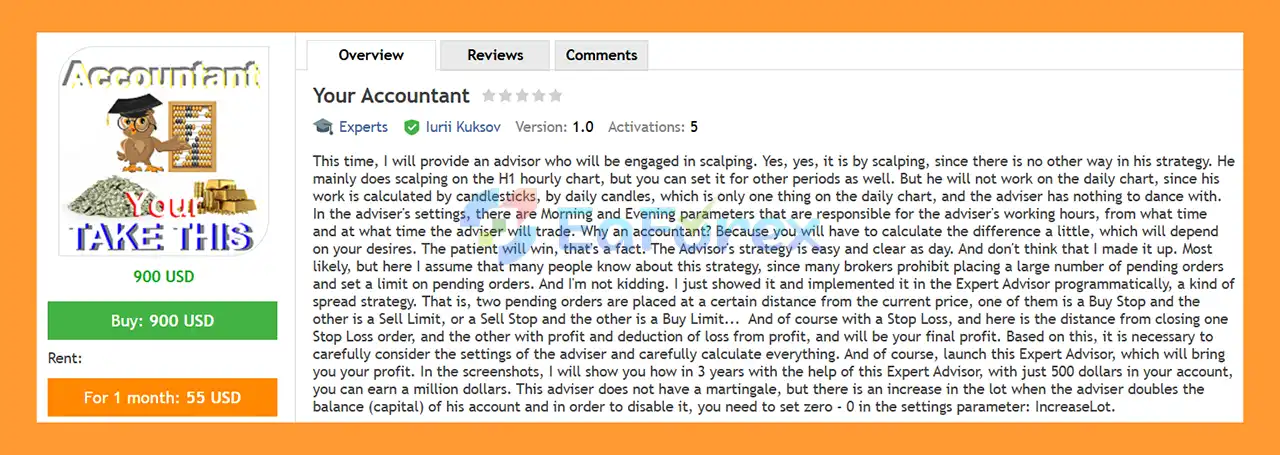 • Flagship Product: Your Accountant EA MT4 is rated as the best performing product of the year.