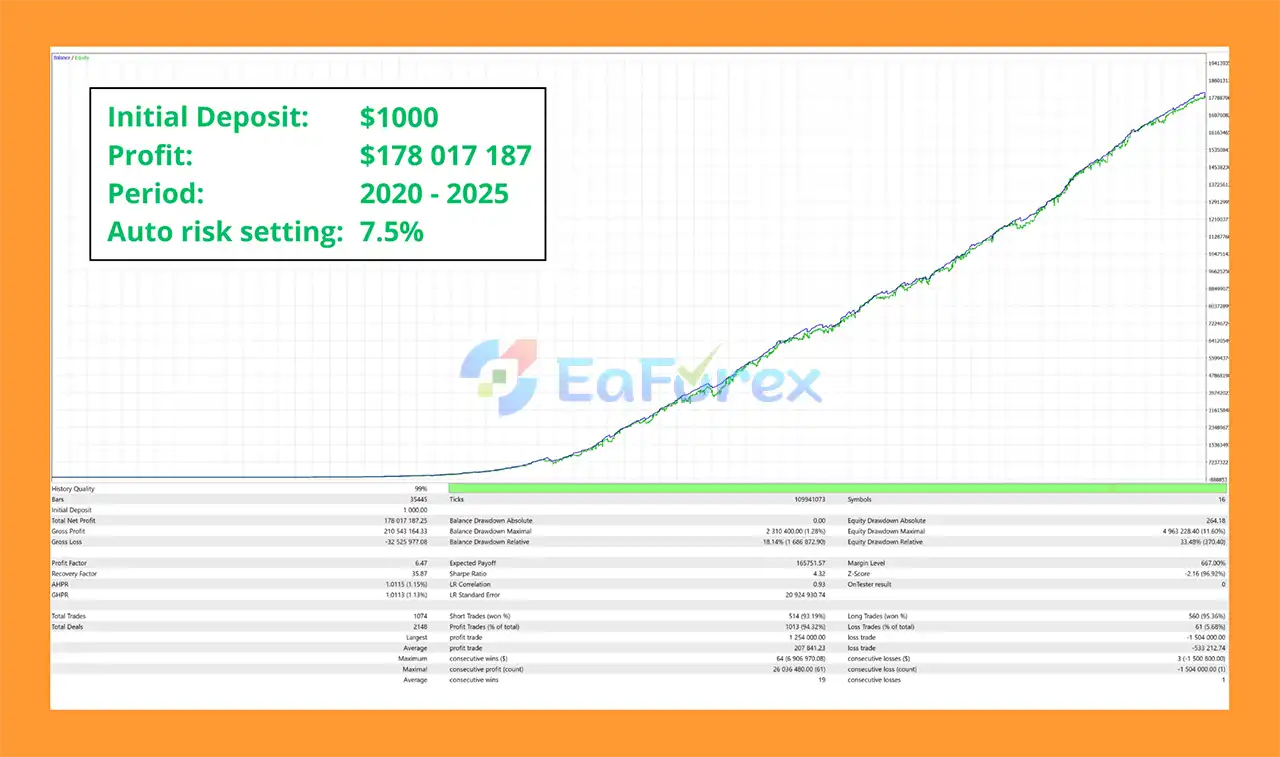 Initial Deposit: $1,000 → Net Profit: $178 Million, Max Drawdown: 1.28%