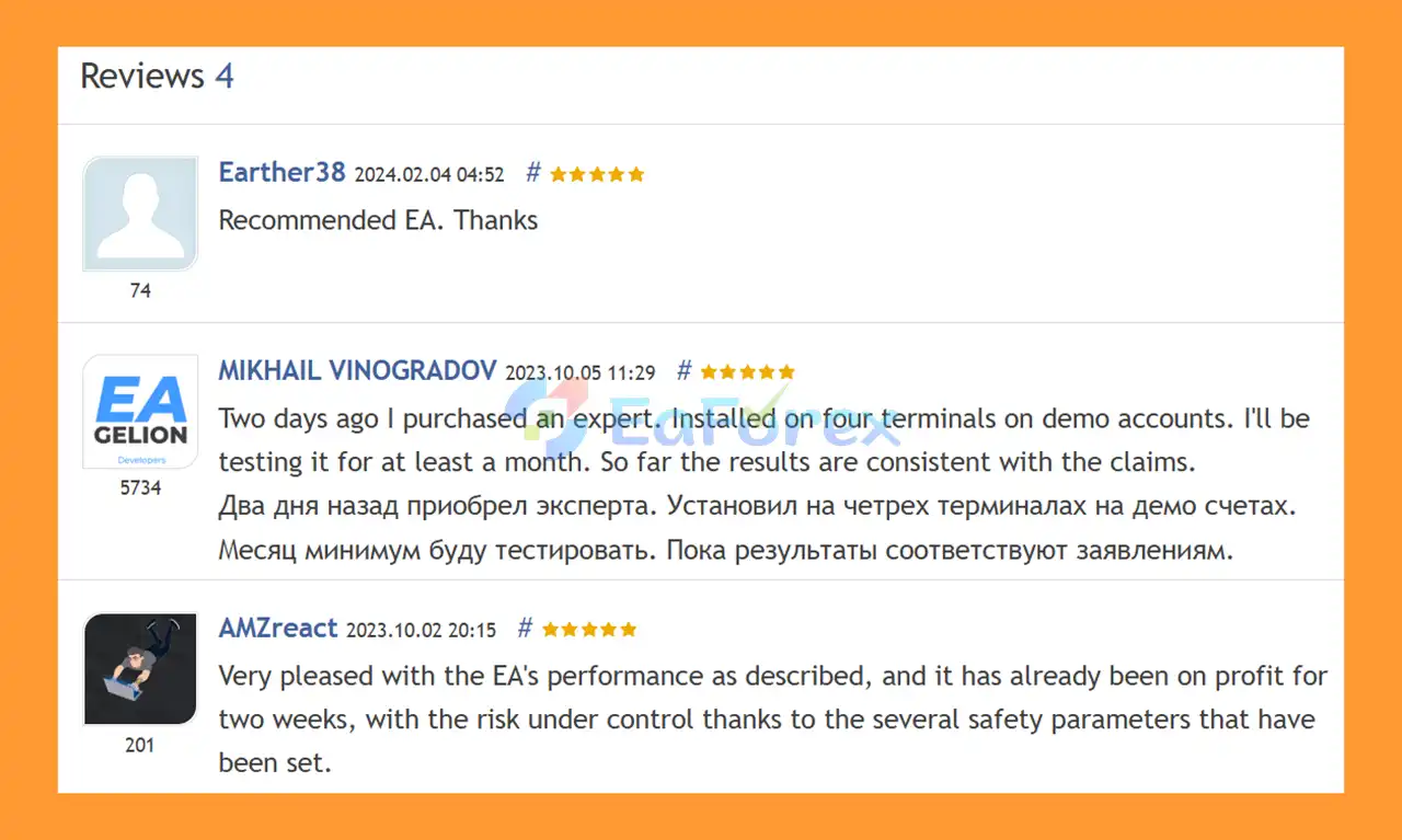 🔺Zonda EA MT5 is highly appreciated by the MQL5 community for bringing stable and reliable profits. Below are 5 star reviews from users: